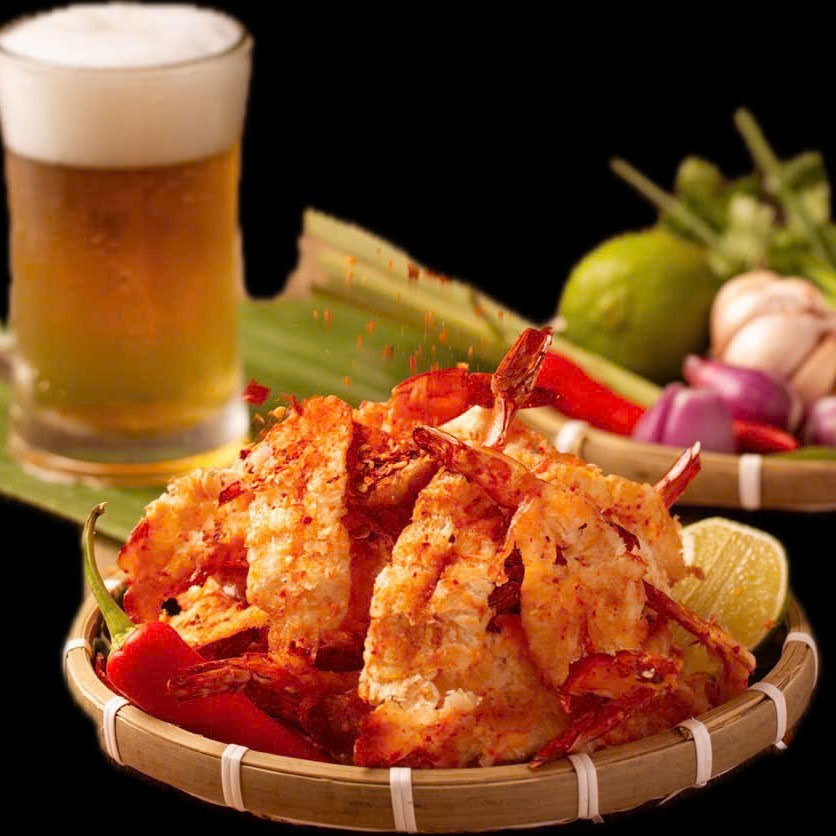 Tôm sấy thơm, dai vừa, vị cay nhẹ rất bắt miệng. Ăn trực tiếp hay nhâm nhi với bia đều ngon.